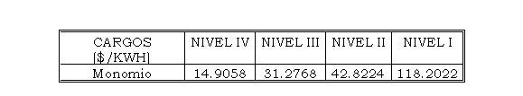 4. Al calcular los cargos por uso resultantes con la metodología establecida en el Anexo No. 1 de la Resolución CREG-099 de 1997, con excepción del numeral 6º, que trata de los límites máximos en los cargos a aprobar a las empresas, se obtuvieron los siguientes cargos, que se comparan con los cargos solicitados por la empresa, a precios de diciembre de 1996: