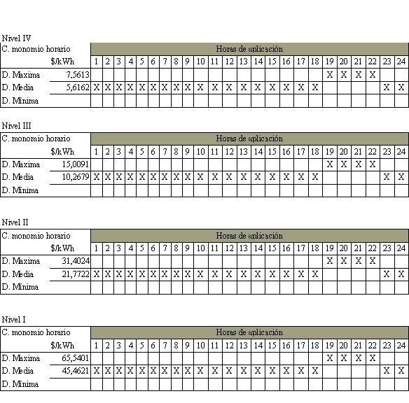 Los cargos monomios horarios por uso del Sistema de Transmisión Regional y/o Distribución Local operado por la Electrificadora de Tolima S.A., serán los siguientes, a pesos de diciembre de 1996: