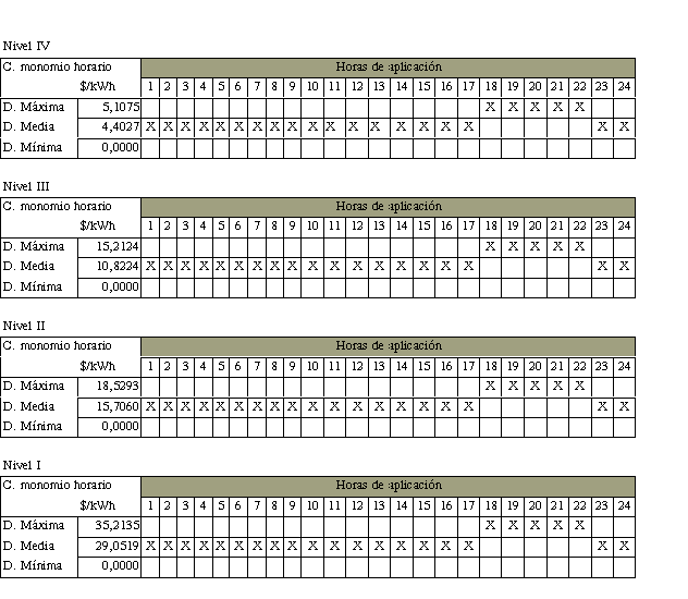 Los cargos monomios horarios por uso del Sistema de Transmisión Regional y/o Distribución Local operado por la Electrificadora de la Costa Atlántica S.A. E.S.P., serán los siguientes, a pesos de diciembre de 1996: