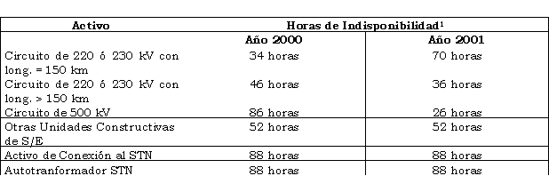 1 Las Horas de Indisponibilidad se calculan de acuerdo con lo establecido en la resolución que define los estándares de calidad de los Servicios de Transporte de Energía y Conexión al STN