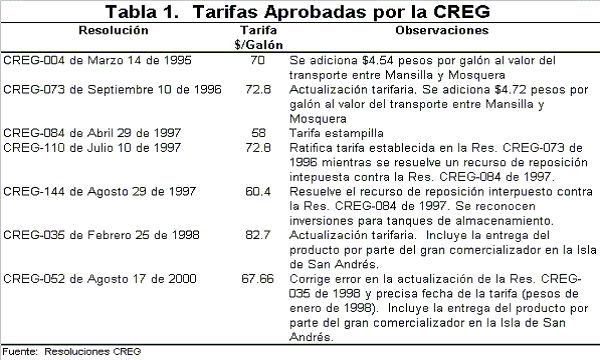 Antes de describir la metodología utilizada por la Comisión para calcular la tarifa actual, es pertinente anotar que desde el año 1995 la Comisión ha realizado varios ajustes a la tarifa de transporte de GLP como se muestra en la siguiente tabla.
