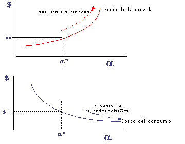 ) eficiente desde el punto de vista técnico y económico. Para ello se consideraran variables como poder calorífico de cada componente y de la mezcla resultante; relación beneficio-costo para el usuario por contar con una mezcla de mejores características de combustión que represente menor o mayor precio y menor o mayor consumo; y condiciones de diseño de la infraestructura instalada para la combustión del GLP para uso doméstico, comercial o industrial, entre otras.
