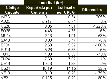 No fueron definidas UC de líneas subterráneas para todos los calibres de cables existentes. Para este caso, lo normal es asimilar la unidad constructiva encontrada a la más cercana de las definidas. El auditor señala que en algunas de las líneas subterráneas auditadas, toda la longitud fue asimilada a la UC con cable 4/0 (N2L23), cuando existen tramos con cable 2/0 e incluso No. 2 que se hubieran podido asimilar a la UC N2L24. [Ej: ver en el reporte del auditor los siguientes códigos de línea, entre otros: CC23; CN14; CN16; CS24; etc.]