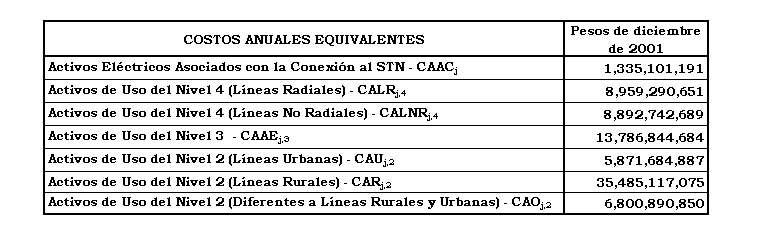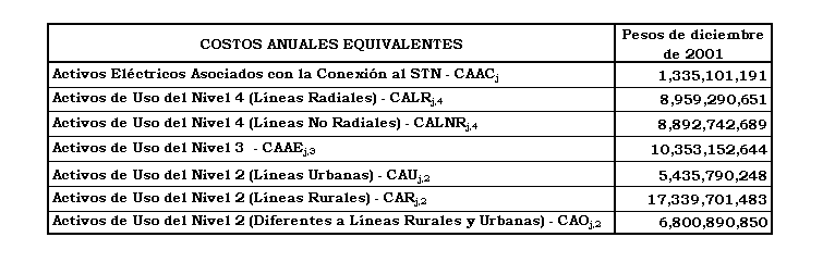 a) Costo Anual para remunerar los activos de conexión al STN y los Niveles de Tensión 4, 3 y 2, sin aplicar los criterios de eficiencia de que trata el Anexo No 8 de la Resolución CREG 082 de 2002: