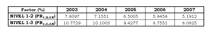 b) Factores para referir las medidas en el nivel de tensión 1 a los Niveles de Tensión 2 y 3: