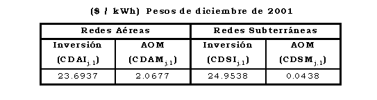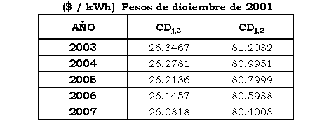 - Cargo de transición para el primer mes de aplicación del Cargo Máximo de Nivel de Tensión 2 aprobado en esta Resolución: 48.0057 $/kWh (pesos de diciembre de 2001).