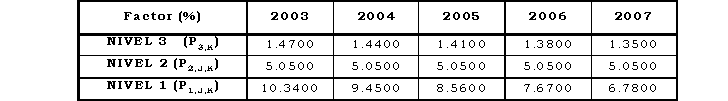 Los factores para referir las medidas de energía al STN y los usados para referir las medidas de energía en el Nivel de Tensión 1 a los niveles de tensión 3 y 2, de que trata el Anexo No 10 de la Resolución CREG 082 de 2002 y que aplican en el sistema operado por RUITOQUE S. A. E.S.P. son: