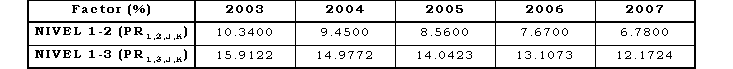 Los factores de que trata el presente Artículo se aplicarán de acuerdo con la siguiente expresión: