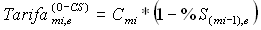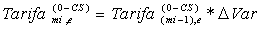 | Tarifa a aplicar en el mes de cálculo para el estrato e, en el rango de consumo entre cero (0) y el CS.