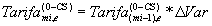, la tarifa para el mes de cálculo será la que resulte de ajustar la del mes inmediatamente anterior con el factor