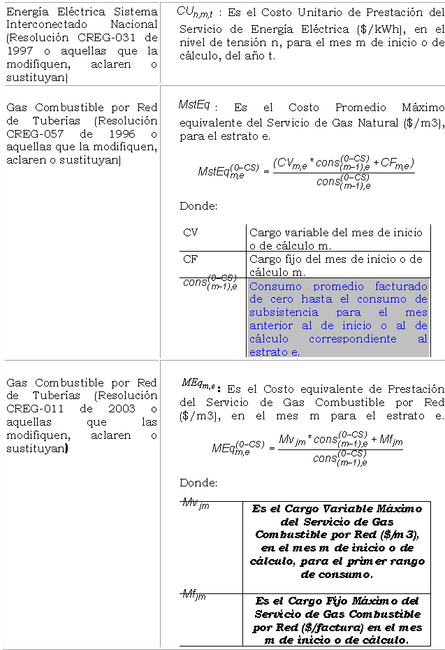 ARTÍCULO 2°. Definición de Variables. Las variables o componentes utilizadas en esta Resolución deberán entenderse en la forma como se define a continuación: