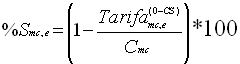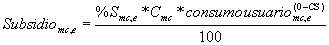 | Porcentaje de Subsidio para el estrato e, calculado para el mes de cálculo mc. |