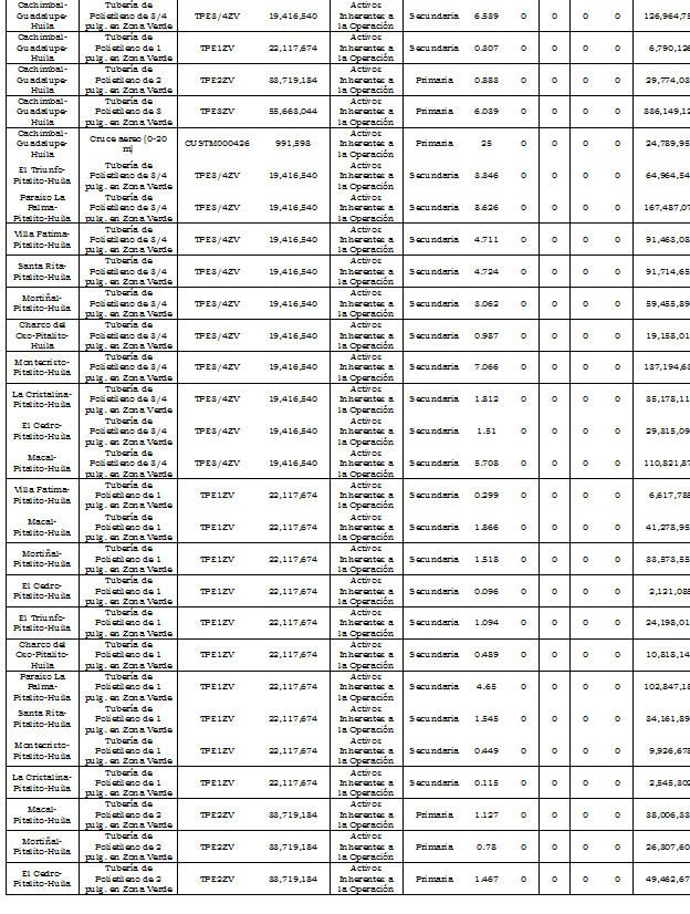 | Charco del Oso-Pitalito-Huila | Residencial | - | 10,320 | - | 10,560 | - | 10,800 | - | 11,040 | - | 11,280 |