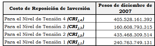 “Artículo 5. Costos de reposición de la inversión. Los costos de reposición de la inversión del OR Empresa de Energía del Pacífico S.A. E.S.P. para cada nivel de tensión, calculados en la forma establecida en la Resolución CREG 097 de 2008, son los siguientes: