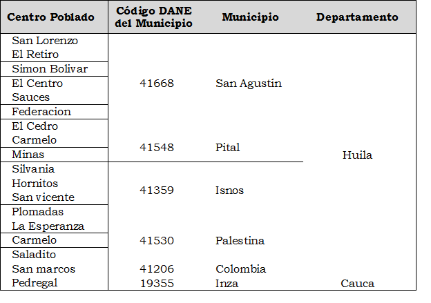 ARTÍCULO 1. Mercados Relevantes de Comercialización. Conforme a lo definido en la Resolución CREG 011 de 2003, se creará un Nuevo Mercado de Comercialización el cual estará conformado por los siguientes centros poblados: