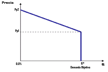 a) Oferta Insuficiente: Si al inicio de la subasta, la oferta no es suficiente para atender la demanda objetivo más la demanda no regulada evaluada esta al Pp1, se calificará como una subasta de oferta insuficiente.