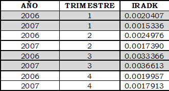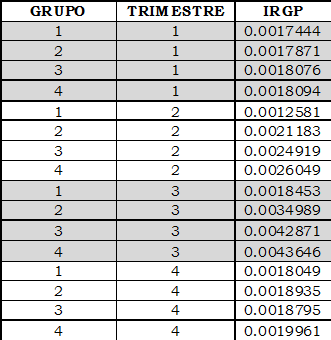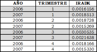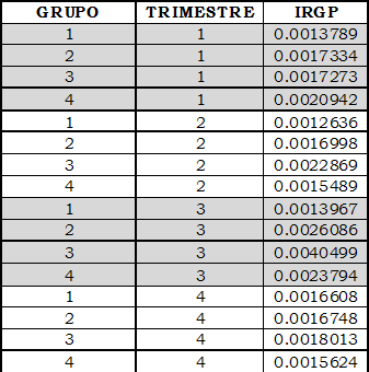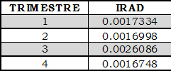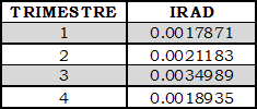 Tabla 1. IRAD por trimestre para el nivel de tensión 1.