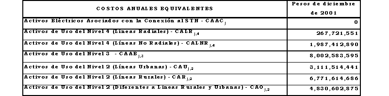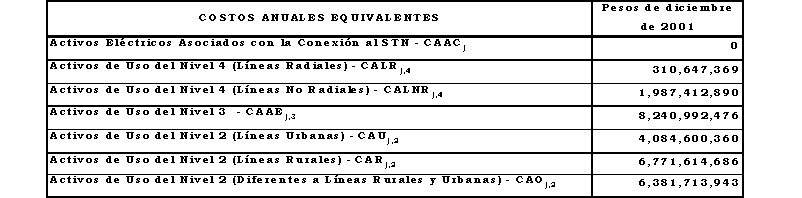 a) Costo anual para remunerar los activos de conexión al STN y los Niveles de Tensión 4, 3 y 2, sin aplicar los criterios de eficiencia de que trata el Anexo No 8 de la Resolución CREG 082 de 2002: