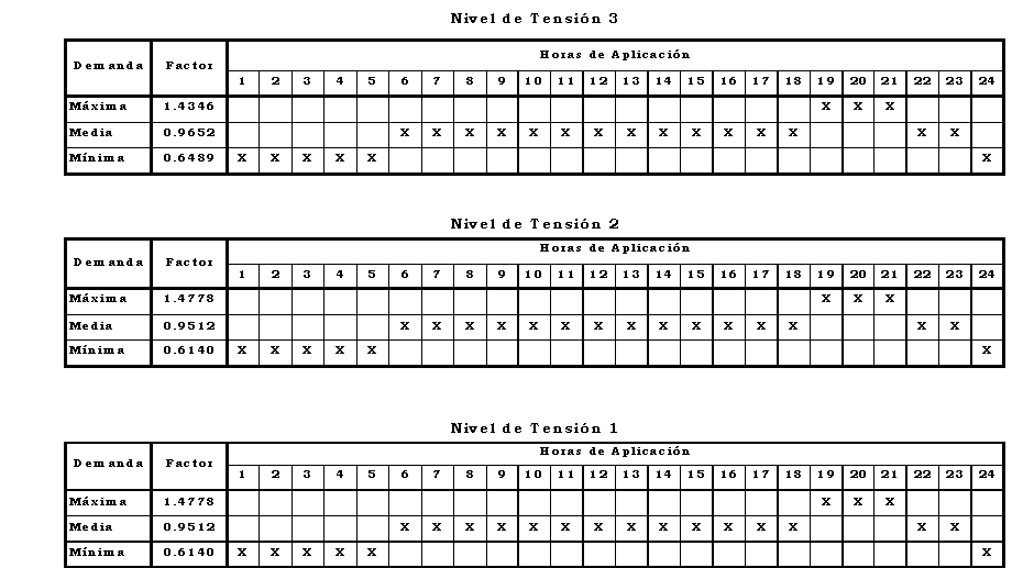 Que a partir de las curvas de carga típicas por Nivel de Tensión presentadas por el OR en la solicitud de aprobación de cargos, la Comisión calculó, siguiendo las disposiciones del Anexo No 9 de la Resolución CREG 082 de 2002, los factores multiplicadores que permiten establecer los Cargos Monomios Horarios a partir de los Cargos Monomios correspondientes;