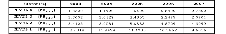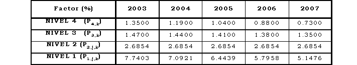 Parágrafo. Los factores de que trata el presente Artículo se aplicarán de acuerdo con la siguiente expresión:
