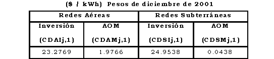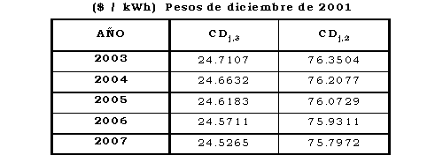 - Cargo de transición para el primer mes de aplicación del Cargo Máximo de Nivel de Tensión 2 aprobado en esta Resolución: 25.7579 $/kWh (pesos de diciembre de 2001).