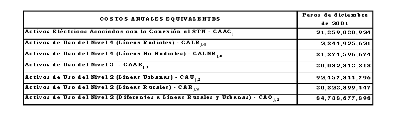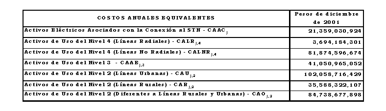 a) Costo anual para remunerar los activos de conexión al STN y de los Niveles de Tensión 4, 3 y 2, sin aplicar los criterios de eficiencia de que trata el Anexo No 8 de la Resolución CREG 082 de 2002: