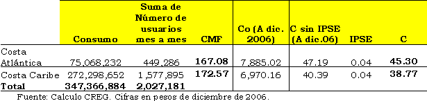 Que ENERGÍA SOCIAL DE LA COSTA S.A. E.S.P. mediante comunicación con radicado CREG E-2007-0233, recibida el 10 de enero de 2007, entregó a la Comisión la información sobre el Consumo Facturado Medio del año 2006, así como los cargos vigentes para enero de 2007 y demás información requerida para el cálculo del Factor de Riesgo de Cartera;