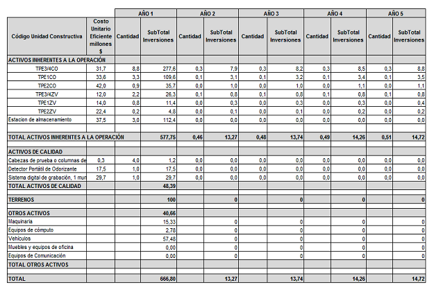 La Empresa, mediante la comunicación E-2010-0011224 y E-2011-003027 reportó a la CREG las proyecciones de demanda, las proyecciones de gastos de AOM de distribución y el programa de nuevas inversiones, clasificadas según el listado de unidades constructivas establecido en el Anexo No. 1 de la Resolución CREG 011 de 2003.