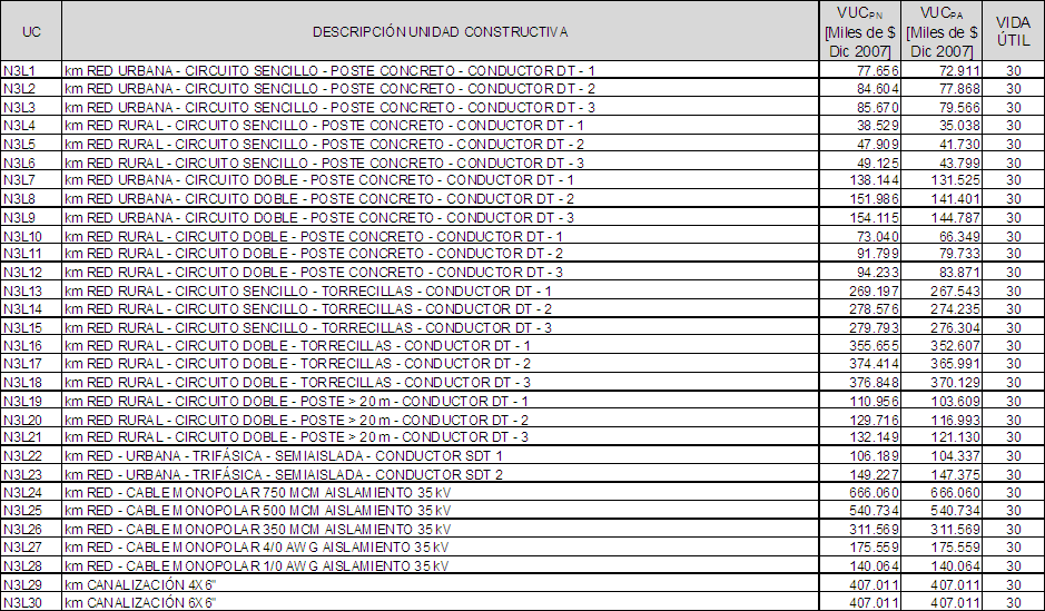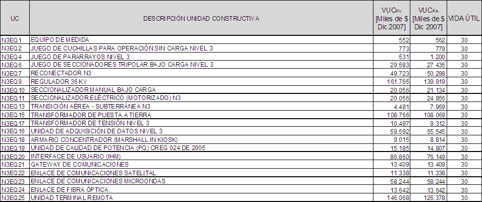 Nivel 3: Sistemas con tensión nominal mayor o igual a 30 kV y menor de 57.5 kV.