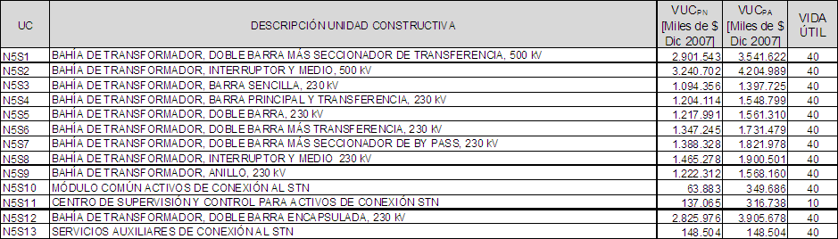 Se consideran como activos de Conexión al STN las siguientes UC: la Bahía de Transformador con tensión mayor o igual a 220 kV, el Transformador con una tensión primaria mayor o igual a 220 kV y, secundaria, cualquier tensión inferior a 220 kV, la Bahía de Transformador del lado de baja y el modulo de barraje del lado de baja.