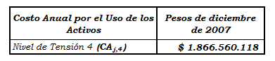 Artículo 1. Costo Anual por el uso de los activos del Nivel de Tensión 4. El Costo Anual por el uso de los activos del Nivel de Tensión 4 operados por la Empresa de Energía del Putumayo S.A. E.S.P., calculado en la forma establecida en la Resolución CREG-097 de 2008, es el siguiente: