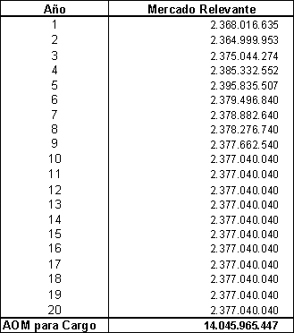 ARTÍCULO 6°. Cargo Máximo Base de Comercialización. A partir de la vigencia de la presente Resolución, el cargo máximo base de comercialización aplicable en el Mercado Relevante establecido en el Artículo 1 de la presente Resolución, es el siguiente.