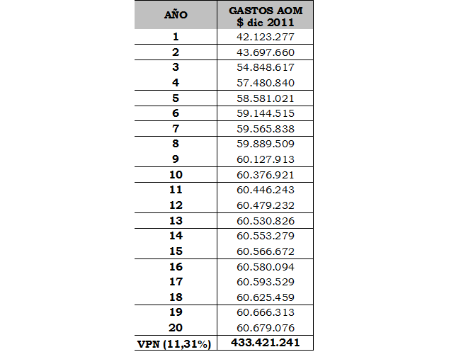 En el Anexo 3 se presentan los gastos de AOM para el Horizonte de Proyección.
