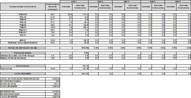 La Empresa, mediante la comunicación en cita reportó a la CREG las proyecciones de demanda, las proyecciones de gastos de AOM de distribución y el programa de nuevas inversiones, clasificadas según el listado de unidades constructivas establecido en el Anexo No. 1 de la Resolución CREG 011 de 2003.