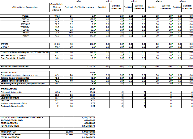 La solicitud tarifaria presentada por PROVISERVICIOS S.A. E.S.P. incluye las proyecciones de demanda, las proyecciones de gastos de AOM de distribución y el Programa de Nuevas Inversiones, clasificadas según el listado de unidades constructivas establecido en el Anexo No. 1 de la Resolución CREG 011 de 2003.