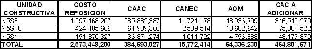 Que de acuerdo con lo establecido en el numeral 2. del Anexo 1 de la Resolución CREG 082 de 2002, para las Unidades Constructivas aprobadas por la UPME, se calcularon los siguientes valores: