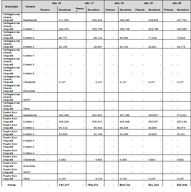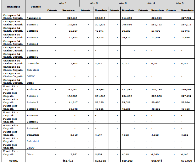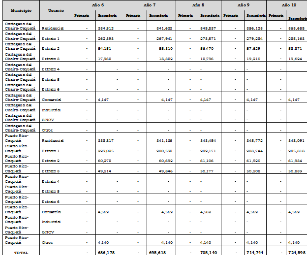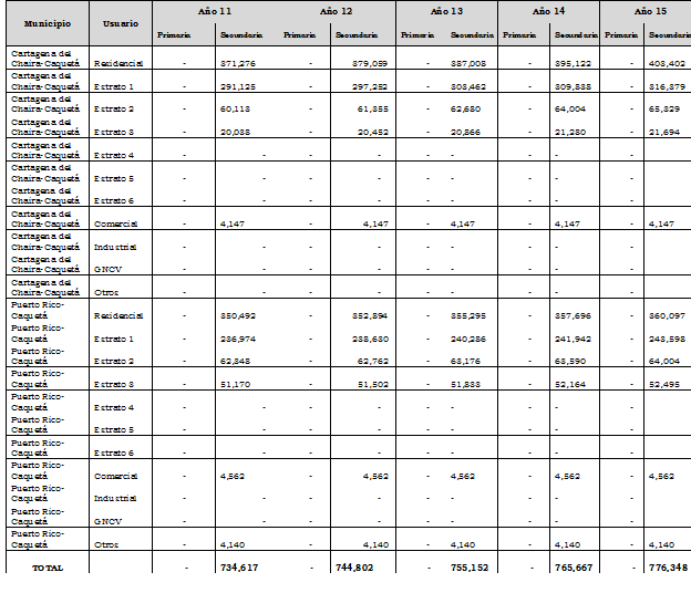 conformado por los municipios de Cartagena del Chaira y Puerto Rico en el departamento del Caquetá, según solicitud tarifaria presentada por la empresa GASES DEL SUR DE COLOMBIA E.S.P. S.A.