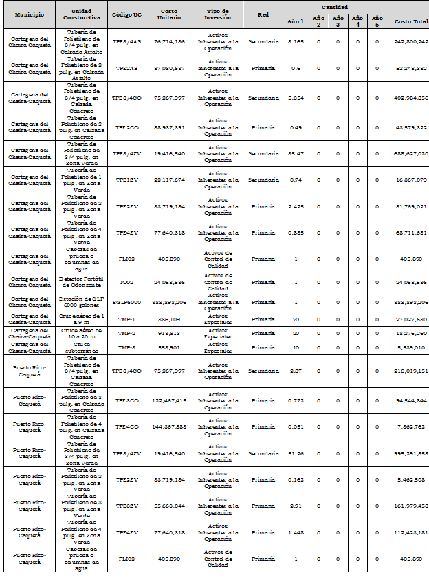 En la mencionada comunicación se allegaron los datos de demanda, gastos de administración operación y mantenimiento AOM y las inversiones clasificadas según el listado de unidades constructivas establecido en el Anexo No. 8 de la Resolución CREG 202 de 2013.