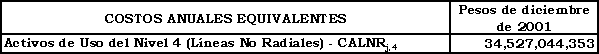 a) Costo anual para remunerar los activos del Nivel de Tensión 4, sin aplicar los criterios de eficiencia de que trata el Anexo No 8 de la Resolución CREG 082 de 2002: