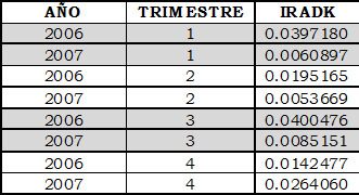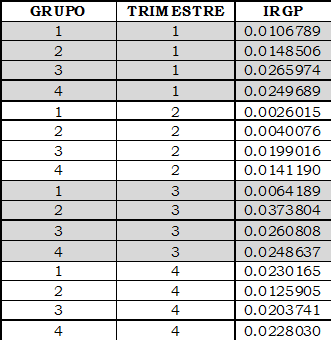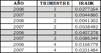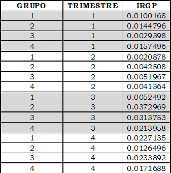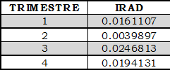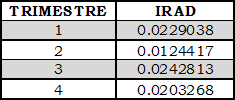 Tabla 1. IRAD por trimestre para el nivel de tensión 1.