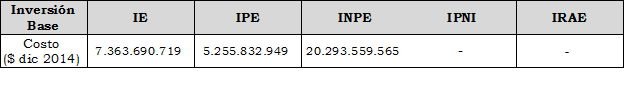 3.3. Inversión Ejecutada durante el período tarifario y No Prevista en el Programa de Nuevas Inversiones (INPE): Inversión en activos que fueron ejecutados hasta diciembre de 2014 y que no fueron reportados en el Programa de Nuevas Inversiones, corresponde a un valor de $20.293.559.565 ($ 31 de diciembre de 2014) y su descripción se presenta en el Documento CREG 104 que soporta la presente Resolución.