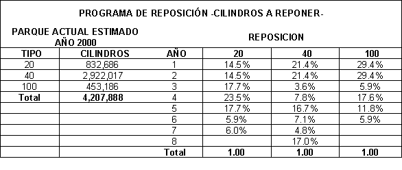La decisión de adoptar un programa de reposición se tomó con fundamento en Estudio Evaluativo del Sector de Gases Licuados del Petróleo –GLP-: Fase I, realizado por la firma consultora ECONOMETRÍA durante el período julio 1997 – marzo 1998, cuyas conclusiones se pueden resumir de la siguiente forma: