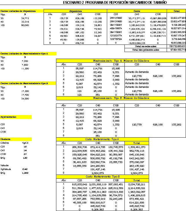 Los Anexos mencionados constituyen la base documental y de datos, que soporta la definición de los nuevos tamaños de cilindros dentro del programa de reposición (ver Cuadro 1). Esta información, unida con la de los siguientes documentos, constituye el estudio que fue realizado por la CREG para la adopción de la medida: