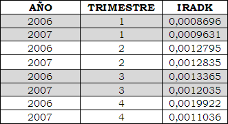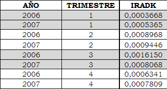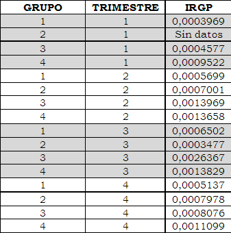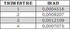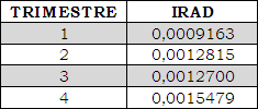 Tabla 1. IRAD por trimestre para el nivel de tensión 1.