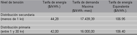 Las tarifas correspondientes a nivel II (Distribución Primaria) se actualizarán al 0.87% mensual hasta alcanzar la meta definida en la Resolución Nº 070 de 1993 expedida por la Junta Nacional de Tarifas de Servicios Públicos. Las correspondientes al nivel I se actualizarán según la Resolución CREG-057 de 1994.