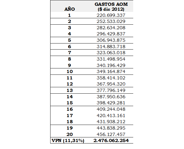 En el Anexo 3 se presentan los gastos de AOM para el Horizonte de Proyección.