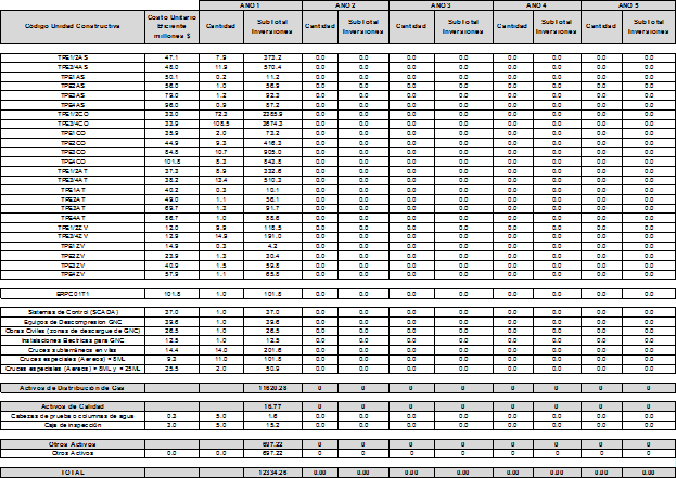 La Empresa, mediante la comunicación en cita reportó a la CREG las proyecciones de demanda, las proyecciones de gastos de AOM de distribución y el programa de nuevas inversiones, clasificadas según el listado de unidades constructivas establecido en el Anexo No. 1 de la Resolución CREG 011 de 2003.