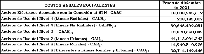 a) Costo anual para remunerar los activos de conexión al STN y de los Niveles de Tensión 4, 3 y 2, sin aplicar los criterios de eficiencia de que trata el Anexo No 8 de la Resolución CREG 082 de 2002: