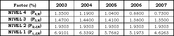 Parágrafo. Los factores de que trata el presente Artículo se aplicarán de acuerdo con la siguiente expresión: