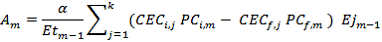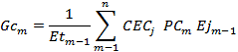 : Energía total entregada al sistema de distribución en el mes m-1, por las n plantas del parque de generación. Este valor se expresa en kilovatios hora (kWh) y será medida en bornes del generador.